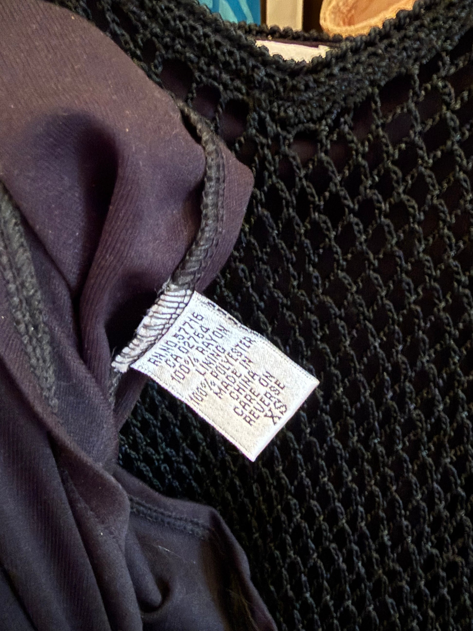 1990s Cache Black Beaded Crochet Asymmetrical Midi Dress / fully lined / bias cus has some stretch / labeled XS/ 100% Rayon self poly lining
